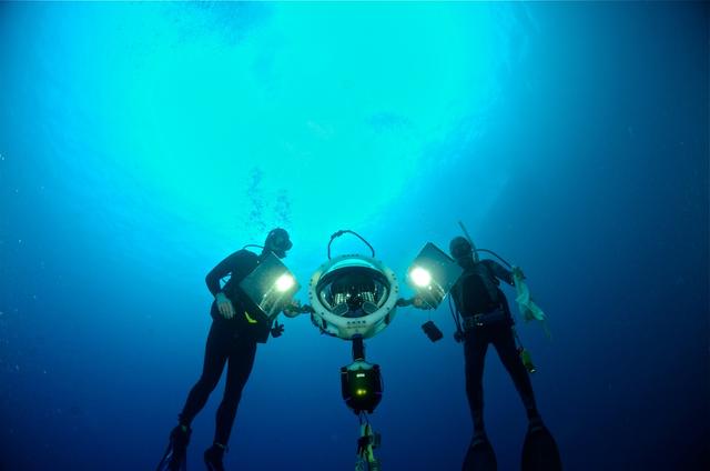 A drop camera and diver in the Salas y Gómez and Nazca ridges © National Geographic Pristine Seas & National Geographic Exploration Technology Lab