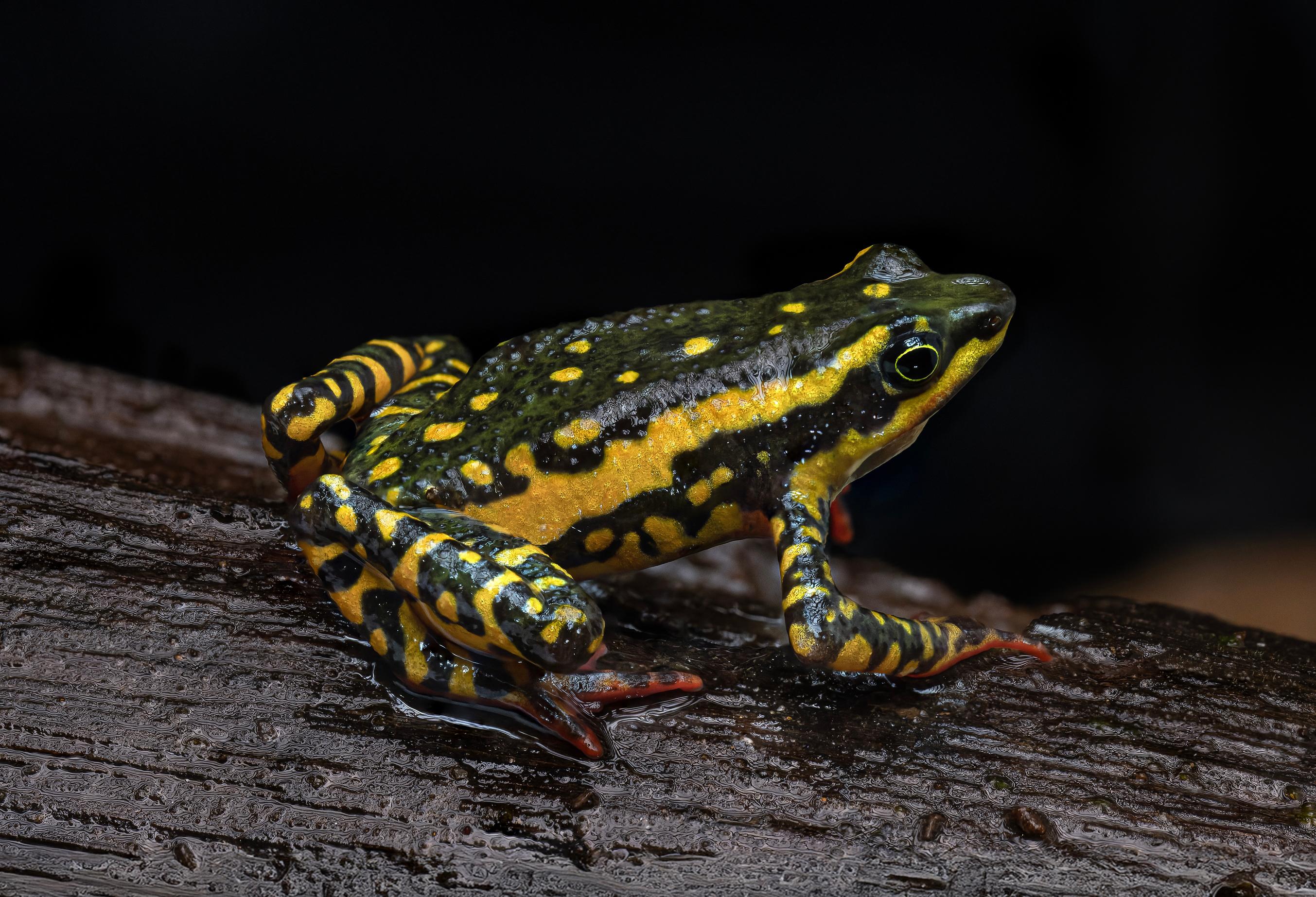 A three-coloured harlequin toad in the montane forests of Bolivia.
