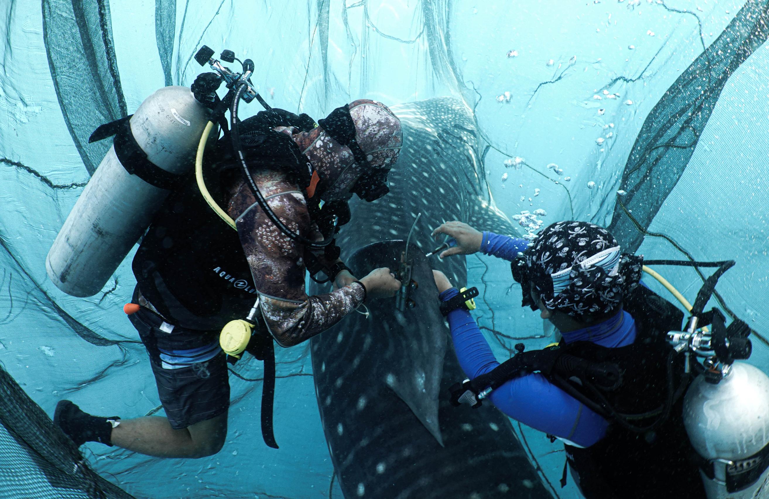 When whale sharks leave the safety of the bays, they enter a world of competing dangers. Over the past 120 years, Indo-Pacific whale shark numbers have plummeted between 50 and 79 percent, driven by fatal collisions with ships, bycatch, and illegal fishing.