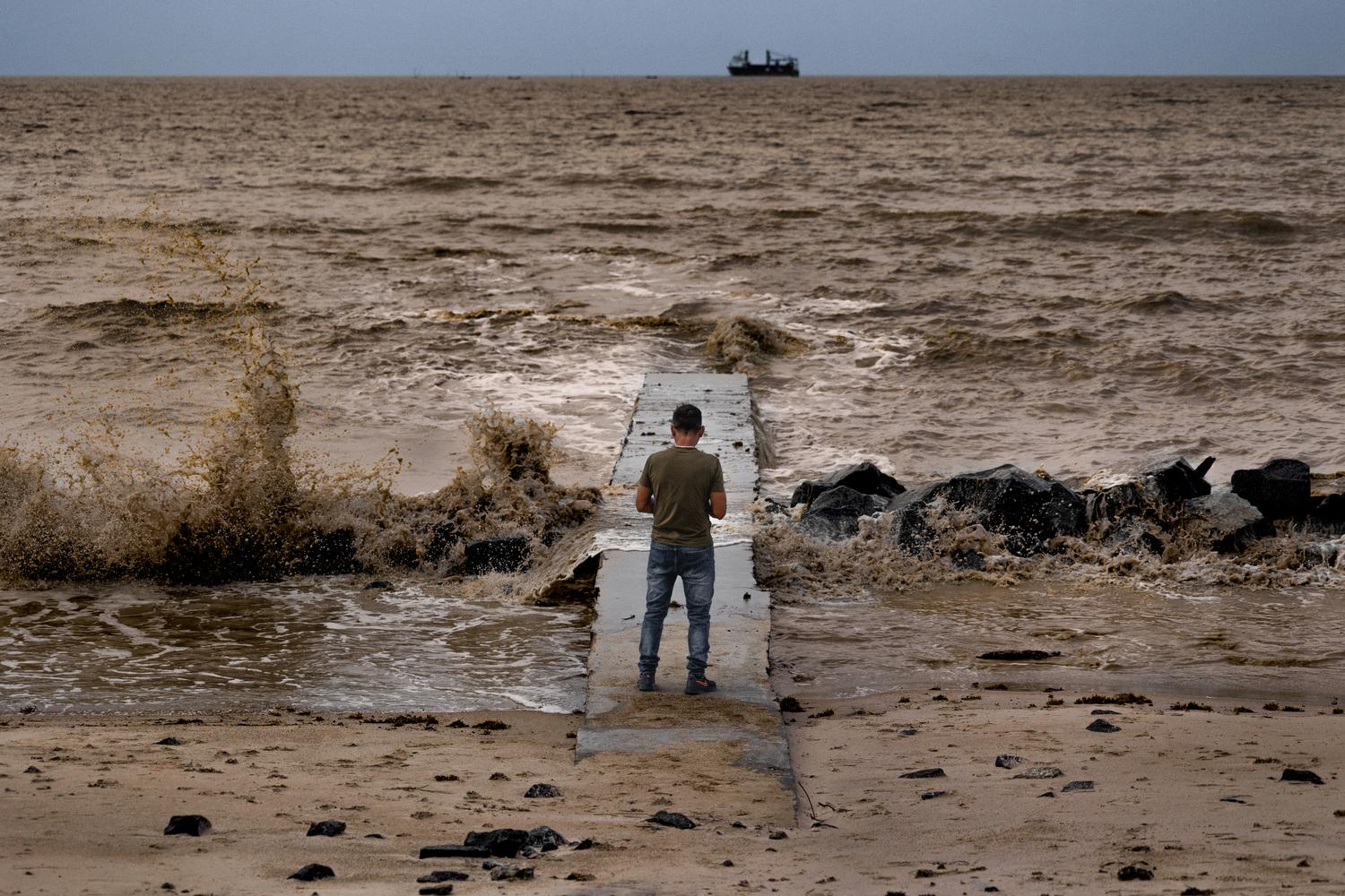 Tion Darlington, chills at the very corner of Georgetown. A very windy spot where the waters of the Atlantic Ocean meet the waters of the Demerara River.