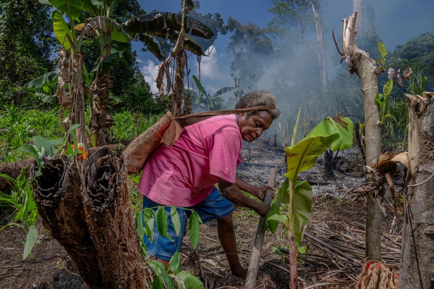 Marica Sianggo plants banana trees amidst the dense forest, a testament to her community's commitment to sustainable living. Balancing the bounty of their rich forests with the needs for agriculture, they choose biodiversity over monocultures like palm oil.